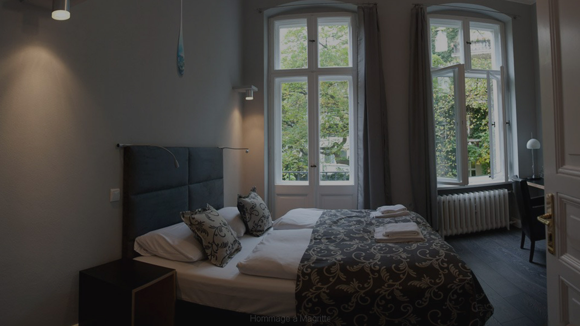 Berlin, City-West. A loud, fast, frantic but at the same time a fascinating, almost absorbing place. A place, where it is easy to get caught up in the maelstrom of big city life. In the middle of this bustling activity – a serene and small artistic hotel dedicated to the spirit of the great magician and the poetic aesthetics of surrealism. A unique art project and a welcoming boutique guesthouse simultaneously.